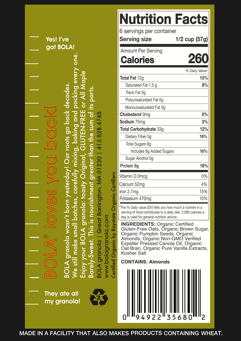 BOLA granola Organic GLUTEN-FREE now with Extra-Virgin Olive Oil: